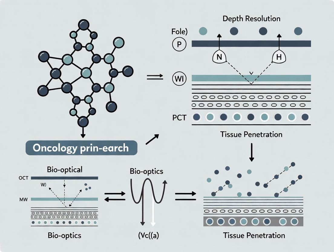 In oncology, non-invasive or minimally invasive imaging is paramount for early detection, guiding biopsies, and monitoring treatment response. OCT, a micron-scale resolution interferometric technique, is depth-limited by the optical properties of tissue. Tumor microenvironment complexity—including hypercellularity, neovascularization, and extracellular matrix remodeling—exacerbates both scattering and absorption, creating a significant challenge for achieving clinically relevant imaging depths (>2-3 mm).