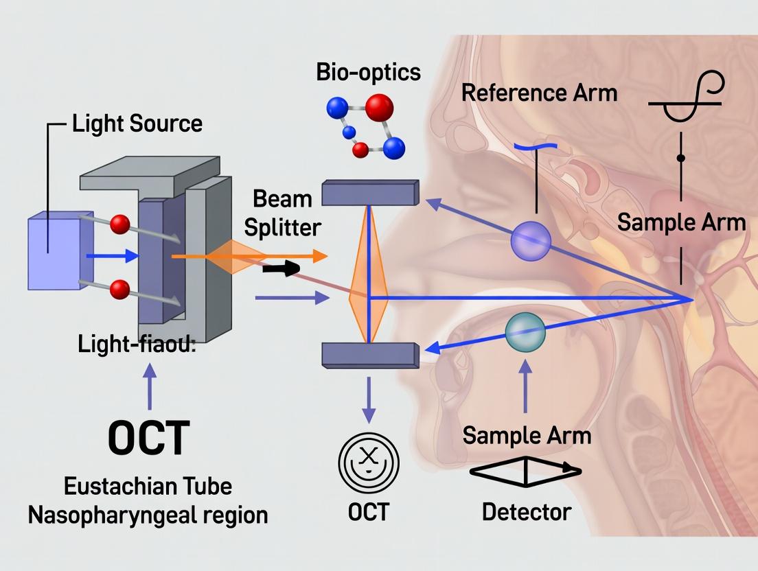 This article provides a detailed examination of Optical Coherence Tomography (OCT) for visualizing the Eustachian tube (ET) nasopharyngeal orifice. Tailored for researchers, scientists, and drug development professionals, it explores the fundamental principles of OCT in this challenging anatomical niche, outlines a step-by-step methodological protocol, addresses common troubleshooting and optimization challenges, and validates its utility through comparative analysis with other imaging modalities. The goal is to equip the biomedical community with the knowledge to leverage this non-invasive, high-resolution imaging technique for advancing studies in ET dysfunction, mucosal pathology, and therapeutic interventions.