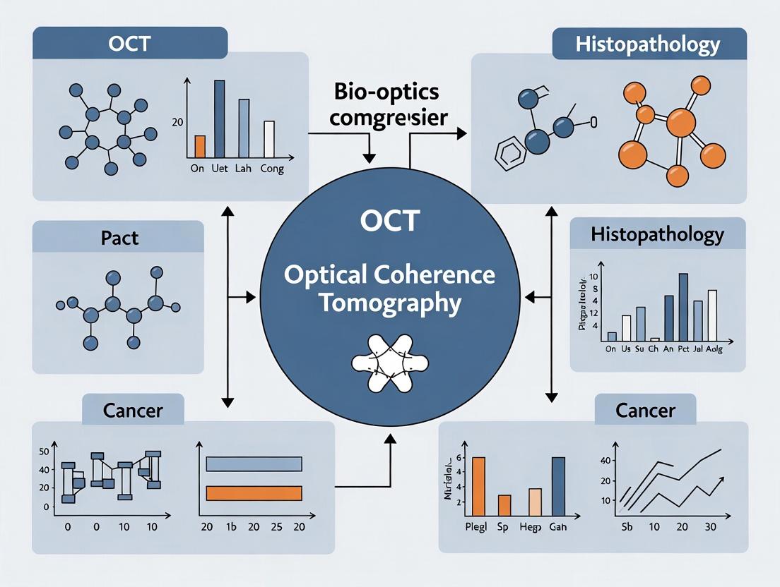 This technical exposition clarifies that OCT's principle of interferometric detection of backscattered light provides a powerful, high-resolution window into tissue microstructure. Within the thesis of OCT versus histopathology for cancer diagnosis, OCT excels in real-time, non-invasive assessment but currently lacks the molecular specificity and definitive diagnostic power of histology. The future research vector lies in robust multi-scale correlation studies (as per the provided protocol), the clinical integration of functional OCT modalities (angiography, spectroscopy), and the development of targeted OCT contrast agents to bridge the specificity gap. For drug development, OCT's ability to monitor dynamic tissue responses in vivo presents unique opportunities for longitudinal therapeutic efficacy studies.
