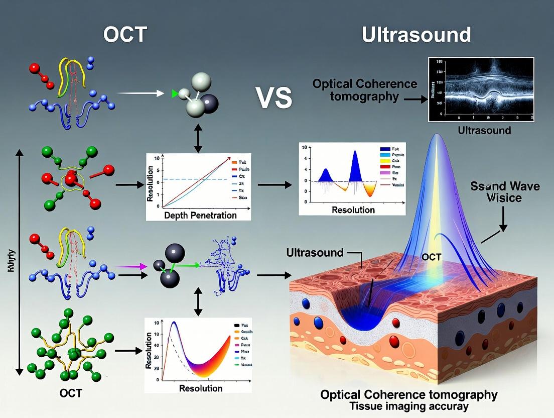 OCT (Coherent Light Interferometry): Utilizes a low-coherence interferometer to measure the echo time delay and intensity of backscattered light. Axial resolution is determined by the coherence length of the light source. Modern systems often employ spectral-domain detection, where the interference spectrum is analyzed to generate depth-resolved structural information.