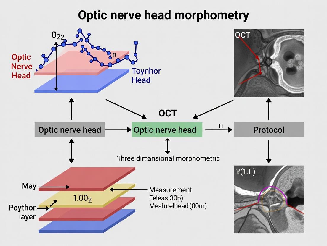 This document details the application of Optical Coherence Tomography (OCT) for the three-dimensional (3D) morphometric analysis of the optic nerve head (ONH). Quantitative measurement of key ONH structures is pivotal for understanding glaucoma pathophysiology, assessing neurodegeneration, and evaluating therapeutic efficacy in clinical trials.